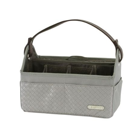 リモコンや小物類をスマートにまとめることができ、ティッシュケースにもなる、リモコン&ティッシュバスケット!散らかりがちなリモコンや、机の上の小物の整理整頓に便利なバスケット。後面にはティッシュを入れることもできる。組み立ては簡単!本体に底板を入れて、仕切り板2枚をマジックテープで固定するだけ。ティッシュカバー側の仕切り板は、ティッシュボックスの厚みによって調節が可能なのもうれしいポイント。前面に2個のポケット、側面にも左右それぞれに1個ずつポケットが付いているから、カード等なくなりがちな小物の収納に便利。取り外し可能な持ち手付きで、持ち運びもラクラク♪コスメやベッドサイドのメガネや小物類、車内の細々したものをまとめる車用の収納バスケットとしても活躍◎