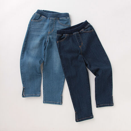 普段使いにうってつけのデニムパンツです。サイドのスリットと少しゆったりとしたシルエットが、こなれ感ただようおしゃれな仕上がり♪ 程よいフィット感のリブウエストでストレスフリーに着用できるのもうれしいポイント。アジャスターゴムを備えているため、サイズ調節も簡単に行えます。内側にはお名前を記入できるタグつきです。【おすすめの着用時期は秋シーズン】【透け感】透けない【生地の厚さ】普通【伸縮性】あり【裏地】なし【ポケット】あり【アジャスター】あり