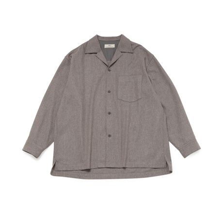 オーバーサイズ、ボックスシルエットのリラックスしたシルエットが特徴のアウターライクにも使えるシャツです。抜け感ある衿腰低めに設定していますので、フロントを全開にしたカーディガンような着こなしもオススメです。ウーステッド素材ですが、カジュアルにも合わせやすいよう製品洗いを施し、単に上品なだけでなく少し粗野な印象も楽しんでもらえる1着です。