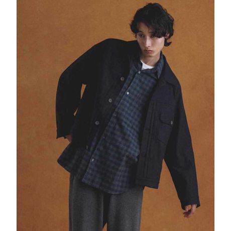 TYPE-I トラッカージャケットのアーカイブをベースに細部のディテールまで再現。ワークウエアとしてアイコニックで完成された美しさの印象を活かしつつ、梳毛ウーステッド素材に置き換えて、サイズ感もゆとりのある現代的なバランスに仕上げています。通常よりも着丈を長く取っているので、いわゆるGジャン特有のコーディネートのしずらさはなく、またウーステッド素材ですが製品洗いを施しているので、単に上品なだけでなく、少し粗野な印象が今年らしいです。素材の滑らかさをダイレクトに感じられるよう裏地なし仕様にしており、ライトアウターとしてもシャツとしても重宝する1枚です。