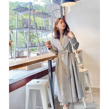 【商品特徴】薄くて軽量ながら、ぬくもりを感じられるガウンコートです。ショールを肩掛けしているような大き目の襟で、顔まわりをすっきり見せてくれます。共布ベルトでウエストマークをすると、より女性らしいシルエットを演出します。裏地はないため、早い時期から取り入れることができます。デイリースタイルに合わせるだけで、こなれ感のある今っぽい着こなしが完成します。【スタイリング】スカート、パンツ、ワンピースとも相性抜群です。ONにもOFFにも活躍できます【素材】上品な表面感で仕上げ、軽く、柔らかく、保温性に優れた素材を使用しています。