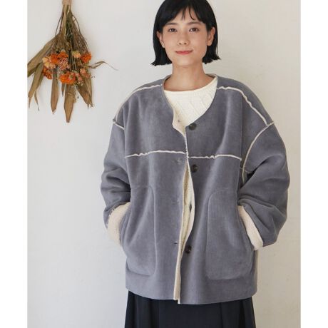 1枚でサマになるので、シンプルなボトムと合わせもOK。ボア×カットコーデュロイなので、スカートを合わせればかわいらしく、