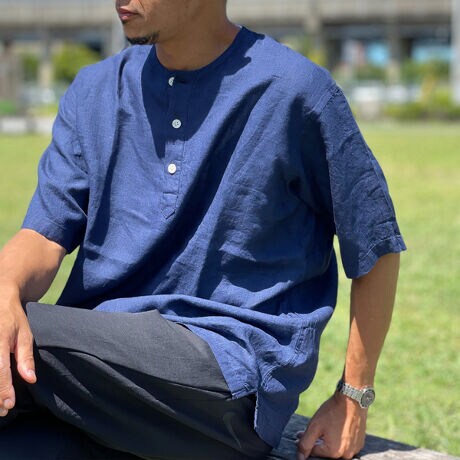 清涼感のある薄手の生地感とヘンリーネックのこ洒落た印象がマッチした、