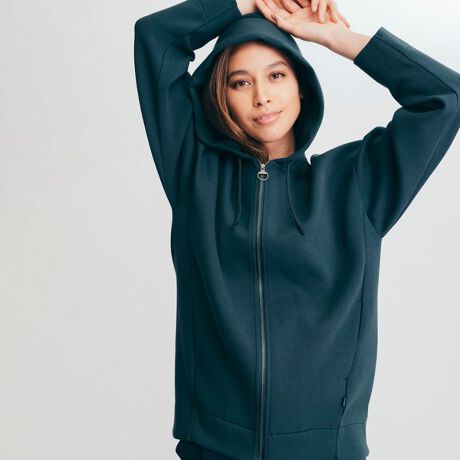 エアリーかつソフトな風合いが特徴のフルジップパーカです。ボディマテリアルには、ストレッチの効いたダンボールニット素材を使用。合わせるアイテムを選ばない今旬なリラックスシルエットで、コンテンポラリーなデイリーユースを演出する1枚です。アウターとしてもミドラーとしても着用できる、モダンなミニマルデザインもポイントです。