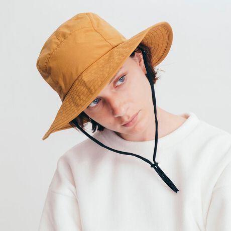 アウトドアライクなサファリハットをモダンにアップデート\n\n-素材の特徴-\n撥水性を備えたナイロン100%\n\n-デザインの特徴-\nサファリテイストを踏襲したモダンなデザイン\n\n-サイズ感-\nレギュラーフィット\n\n控えめで上品な光沢感と撥水性を備えたナイロングログラン素材を使用した、モダンな印象のサファリハットです。裏地にはメッシュをあしらい透湿性も考慮。着脱可能なアゴ紐を備える深めのデザインで、タウンユースからアウトドアフィールドまで、幅広いシチュエーションで活躍します。