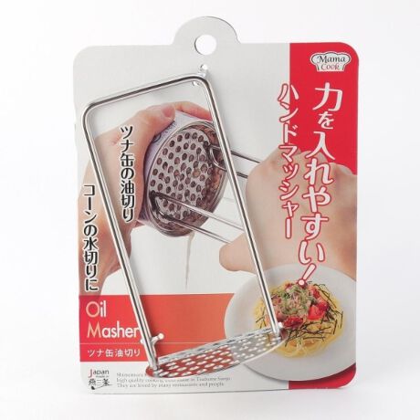 通常のマッシャーとしての使用はもちろん、ツナ缶の油切りや、とうもろこし缶の水切りにも使用できる便利商品になりました。