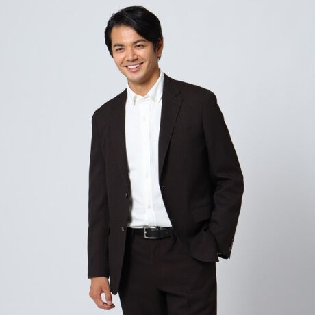 色々なシーンやオフィススタイルはこの1着で解決。メランジ感のあるシャークスキン柄で登場。