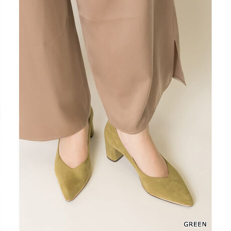 ・すっきりとした女性らしい履き口のVカットとポインテッドトゥ