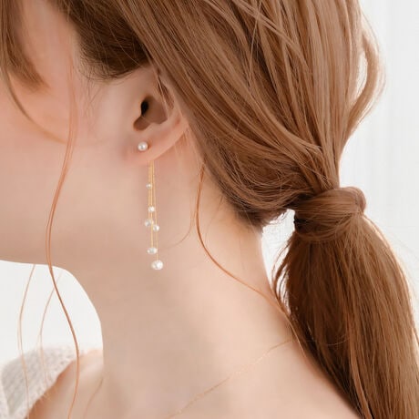 【水滴を思わせる艶めく淡水パールを連ねた3wayピアス】