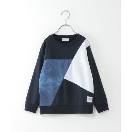 【キッズ】[速乾]ブリーチデニム切り替えトレーナー(100?160cm)