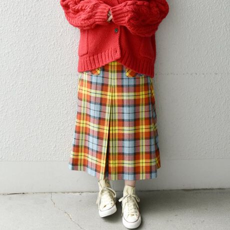 SHIPS anyオリジナルカラーの大胆な配色のチェックが目をひくスカートです。