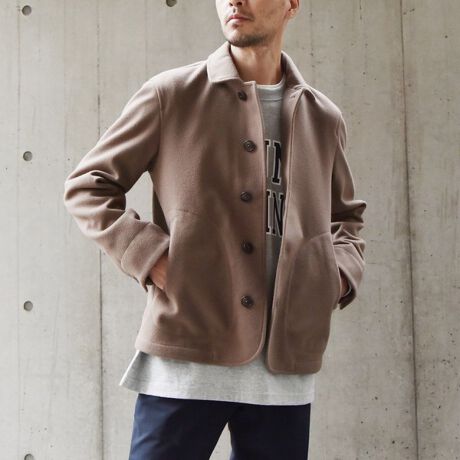 メルトンコートのように羽織れるので、Tシャツやシャツはもちろん、スウェットやパーカーとも相性バッチリ。
