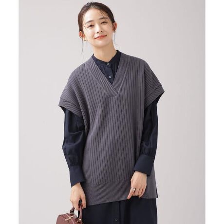 ゆったりとリラックス感漂うVネックベスト。洗濯機で気軽に洗えて、ロングシーズン着回せる万能さが重宝します!
