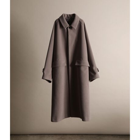 袖周りのボリュームを多くしたワイドスリーブが特徴のドルマンコートです。腕をあげるとムササビの様なユニークなシルエットが可愛く、ゆとりが多い分動きやすさも抜群です。脇にボタン調節可能な深いスリットデザインを入れ、パンツのポケットの使用も出来ます。動きで広がるスリットが新しいシルエットになりボリューム感をさらに楽しめます。ルーズなインナーの上からも問題なく羽織れトレンド感のある着こなしを演出できます。