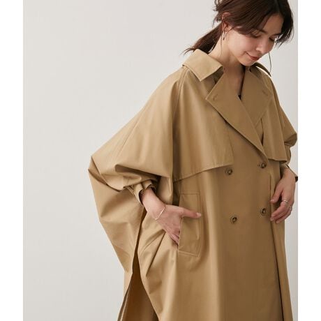 美しいドレープが特徴のポンチョ型トレンチコート。