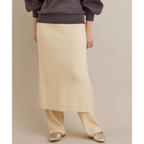 ぽこぽことした独特な表面感が特徴のブークレーニットを使用した今年らしいスカートとパンツのセット。