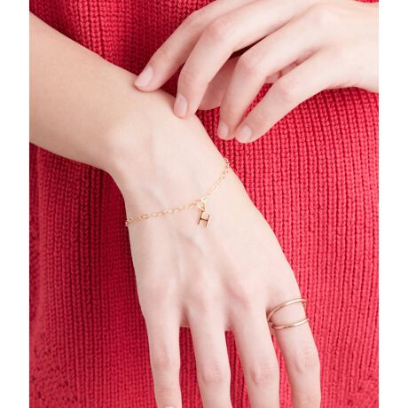 細くて平たいあずきチェーンが繊細ながらも存在感もある印象のブレスレットです。