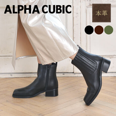 グリッターセレクトの本革スクエアトゥサイドゴアショートブーツ