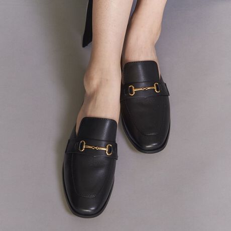 メタリックなビットが正統派クラシカルな印象を演出する、ローファースライダーシューズ。