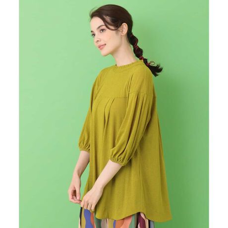 シンプルなワンカラーながらデザイン性のあるチュニックカットソー。