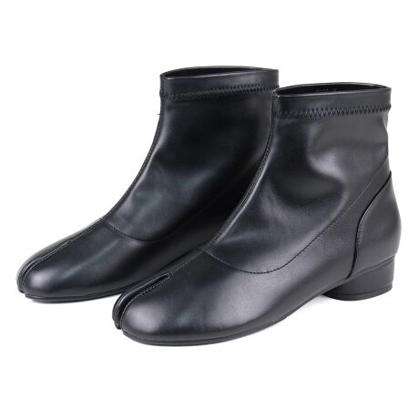 タイトスカートやプリーツスカートに足袋ブーツを合わせ、足元からモード感を演出。トップスにボリュームスリーブやブラウスを取り入れると、女性らしいメリハリのあるシルエットに。靴の足袋デザインが程よく個性をプラスし、シンプルながらも印象的なスタイリングに仕上がります。