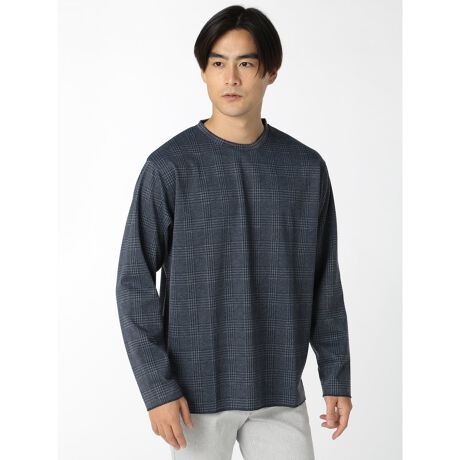 ダブルフェイス チェック柄クルーネック長袖Tシャツ