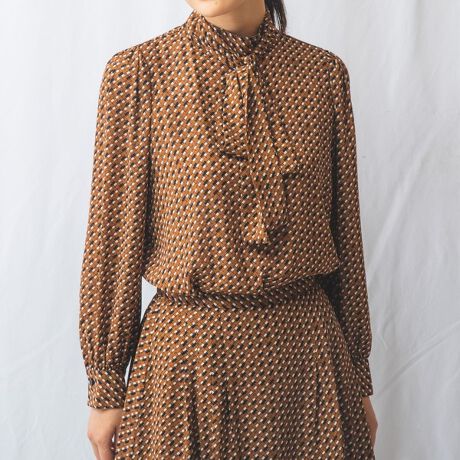 軽やかなジョーゼット素材で仕上げたブラウスです。ネックのリボンは取り外しが可能なため、気分に合わせて着こなすことが可能。ふっくらとした袖のフォルムも印象的。サイドには切込みを入れ、動きやすくデザインしました。さりげない肌見せが叶う、後ろの首元のカッティングも特徴のひとつ。幅広いシーンでお使いいただける、上品な雰囲気のアイテムです。
