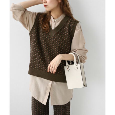 存在感のあるオリジナル柄のジャガードニットベスト。