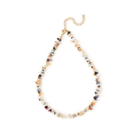 クラッシュした形状の天然石がランダムに連なったネックレス。