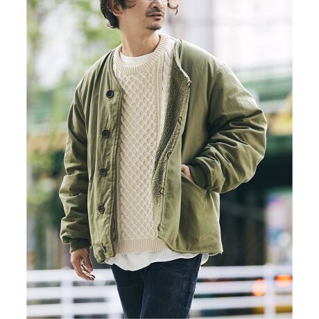 今回は前年ご好評いただいたリバーシブルコートに改良を加え、ミリタリーのライナーを1枚のアウターとして再構築したリバーシブル仕様のブルゾンタイプです。