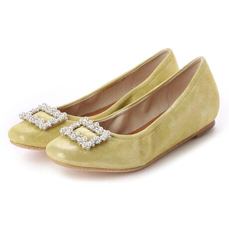 【madras】小粒パールとキラキラ光るクリスタルストーン製の綺麗なボロネーゼ製法のバックル付きバレエシューズ。 トレンドのキラキラバックルを甲にあしらいました。履き心地足入れはとても良く快適♪ボリューミーなスカートやワンピーススタイルの足元を華やかにお洒落れに演出してくれます。ゴードにキラキラの箔をプリントしたアッパー素材です。
