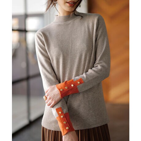 シンプルなハイゲージニットは、袖口のディテールで差をつけて。