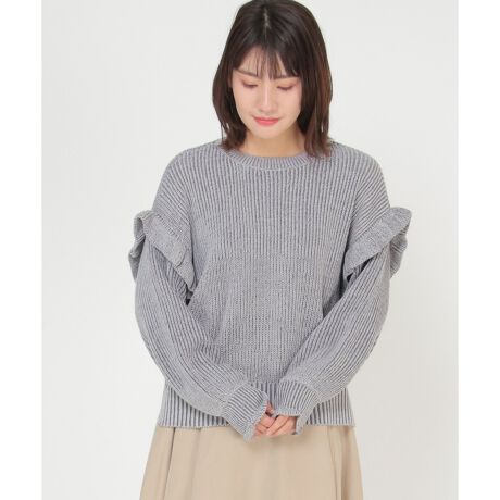 [型番:26180540]肩と袖のフリルデザインが魅力の可愛いニット。裾はリブ仕様でメリハリを付けました。後ろ丈は長めでバランス良く着られます。[洗濯方法]洗濯の際はネットを使用してください