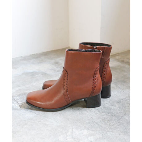 スクエアトウ&フレアヒールがお洒落なアンクルブーツ少し長めの丈感で脚を綺麗に見せてくれる「モードカオリ」注目アイテムです。