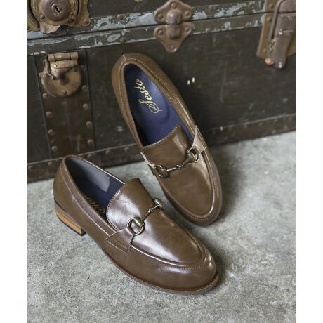 アンティークゴールドのビットを添えたトラッド感たっぷりのローファーパンプス。