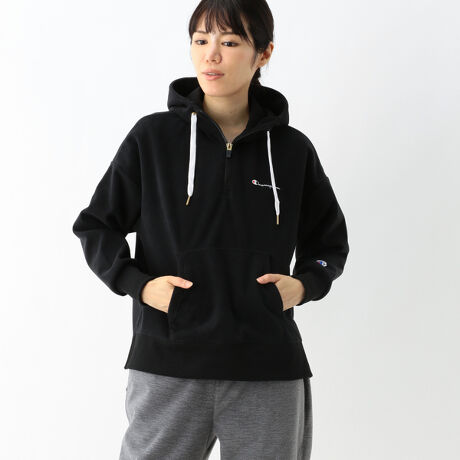 生地の中間層にフィルムを入れた三層構造で、防風性と保温性を兼ね備えた、温かく肌触りが良いマイクロフリースを使用したカンガルーポケット付きフーデッドジャケットです。身頃は前後で長さを変え、両脇にはスリットが入っています。胸にChampion(チャンピオン)ロゴの起毛刺繍を入れています。