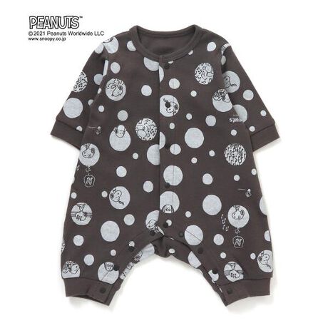 PEANUTS(ピーナッツ)前開きモノトーン総柄カバーオール
