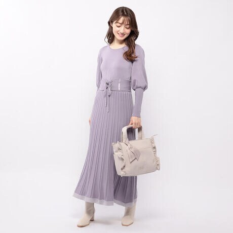 着やすさ抜群のニットワンピースに、トレンドのマトンスリーブとプリーツ加工を施しました。
