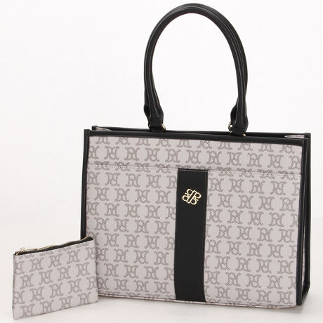 [型番:RPT-B015]オリジナルのモノグラムプリントがポイントのトートバッグです。A4サイズ対応なので通勤・通学にも最適です。同素材のミニポーチ付き。