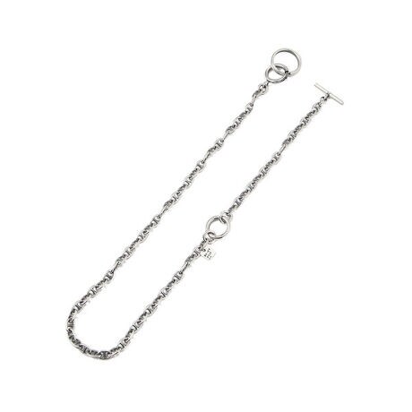 on the sunny side of the street(オン ザ サニーサイド オブ ザ ストリート) Small Anchor Wallet Chain&Necllace スモールアンカーウォレットチェーンネックレス1980前後の真鍮製のデッドストック ヴィンテージ チェーンにシルバーの厚メッキを施したシリーズ。洗練された80’sシーンを現代風にアレンジしました。コーティング技術によりシルバーの風合いでお使い頂けます。幅広いバリエーションで展開しており、お好みのテイストをお選び頂けます。シリーズの中では細身なアンカー チェーンを使用したウォレットチェーン。ネックレスとしても使用していただけます。シルバー925製のブランド チャームがアクセントになっています。カラーは、いぶしをかけたシルバー タイプと、シャープなホワイトシルバー(鏡面) タイプの2種類で展開しています。【on the sunny side of the street/オン ザ サニーサイド オブ ザ ストリート】長年にわたるジュエリーディレクションの経験をもとに、2011年に自身のブランドをスタート。 「ファッションの一部としてのアクセサリー」を提案。 そのブランド名は、1930年アメリカの大恐慌時代に作られヒットしたジャズの名曲『on the sunny side of the street』から名付けられたもの。 「ほらコートを持って・・・帽子もね。心配は玄関に置いて出かけよう。お日様側を行けば、人生ってこんなに素晴らしい」という曲中の歌詞にあるように、デザイナーのジュエリーに対する前向きな想いが込められている。 パーツ一つ一つにも意味があるものを使用。ハンドメイドで仕上げられる独特の風合いと、そのメッセージ性の強さも魅力。
