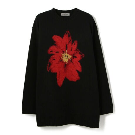 Yohji Yamamoto/ヨウジヤマモト/花柄丸首長袖ニット