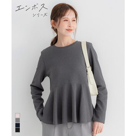 大人気エンボスシリーズの裾フレアトップス