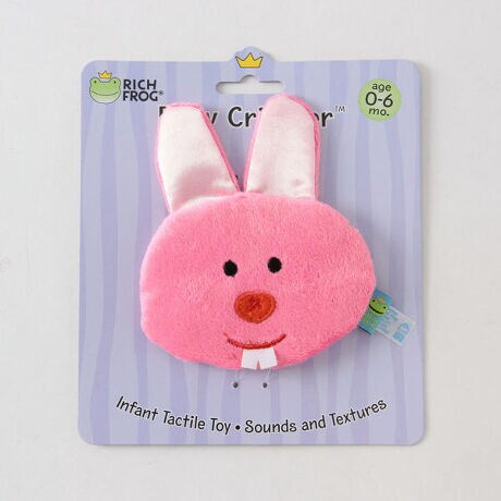 こちらはビニール音が鳴る布地のおもちゃで、ウサギさん、カエルさん、ゾウさん、の3パターンで登場!!発色の良い色彩で、ところどころで生地や柄を変えています。この異なる生地を使用することで、視覚や触覚を刺激します。おしゃれで可愛いデザインなので、ギフトにも喜ばれること間違いなしです!