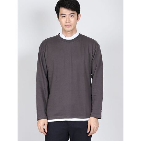 【WEB限定】快適 モックネック フェイクレイヤード 長袖Tシャツ