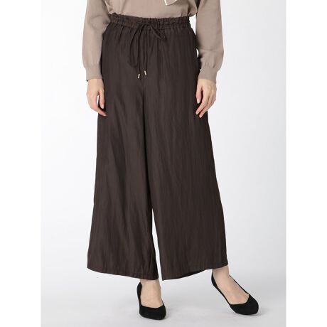 エレガントな雰囲気に仕上げた、ノータックのワイドパンツです。ウエストゴムのイージー仕様で、着席時も窮屈感がありません。コーディネートを簡単に決められる。クローゼットにあると重宝するセットアップ企画です。