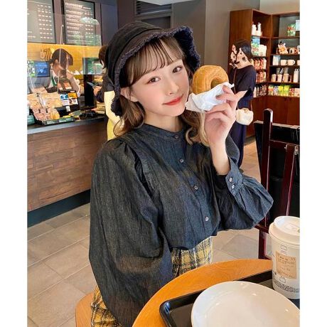 《インフルエンサー森下愛里沙さんレコメンド》パフスリーブダンガリー