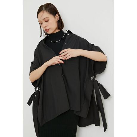 ポンチョデザインが新鮮なシャツ。ハトメとボタンを金属デザインにする事で、より今どきな印象を与えるデザインにしています。前を閉めてTOPSとしても、羽織としても着用出来ます。重ね着にもお勧めなので多様な着回しが楽しめます。今期トレンドのBRNの色味もPointです。