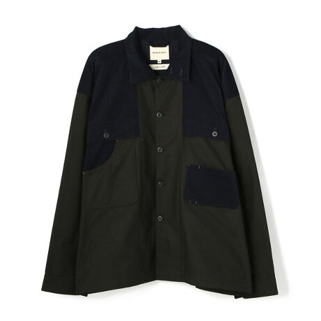 NICHOLAS DALEY/ニコラスデイリー/OVERSIZED WORK SHIRT打ち込みの良いコットンチノクロスを採用、ワッフルコーデュロイをパネル使いで配したワイドシルエットのワークシャツジャケットNICHOLAS DALEY/ニコラスデイリーロンドンに拠点を置くメンズファッションブランド。2013年にセントラル・セント・マーチンズを卒業し、サヴィル・ロウでの勤務経験を経て、2015年自身の名を冠したブランド「ニコラスデイリー」をスタート。イギリスで生まれ育ちながら、ジャマイカ系の父親を持ち、自身の生活環境や生い立ちから得た経験、インスピレーションをもとにデザインされた洋服は、民族的、音楽的要素を持ち合わせる。