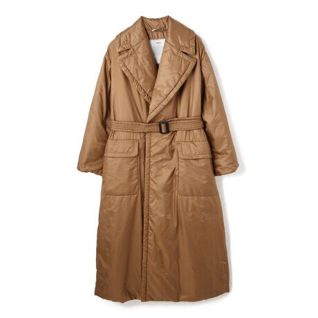 MAX MARA/マックスマーラ/キャメルナイロンロングコートマックスマーラのアイコンコート、MANUELAやRIALTOに使用される最高繊維のキャメルをアップサイクルした新素材を中綿として使用したCameLuxeは、キャメルの毛織物がリサイクルされるだけでなく、元の素材よりも価値の高い商品を生み出すサステナブルなものづくりを実現したMax Maraオリジナルのテクノロジーによるもの。特殊な技術により加工された細い繊維はシベリアダウンに匹敵する暖かさを兼ね備え、最大の特徴として驚くような軽さと心地良さを体感いただけます。オーバーサイズのシルエットをお楽しみいただけるのはもちろん、付属のベルトを締めてウエストマークしたスタイルもお薦めです。<ポケット>フラップパッチポケット<スタイル>ボタン留め、共布ベルト付き、トラベルバッグ付き※光の当たり具合で実際の商品と色味が異なる場合がございます。MAX MARA/マックスマーラCameLuxe/キャメルクス3つのステップを踏んでつくられます。まず、回収されたキャメルコートなどの余り生地をイタリア国内のメーカーから集めて分別します。次に、それを機械的に処理して超微細な繊維に変え、最後にその繊維をリサイクルされたポリエステルと混ぜ合わせて、高性能の断熱素材をつくり出します。そしてこの素材を加工し、中綿に仕立てて完成させます。