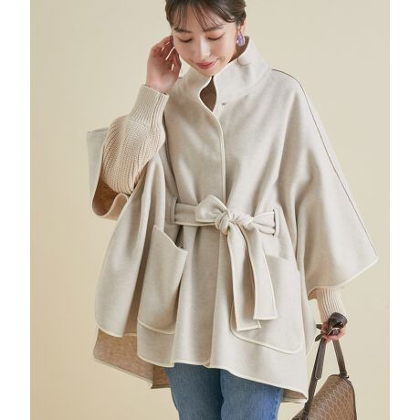 裏地で滑らないのでポンチョの形でもしっかりと身体にはまります。